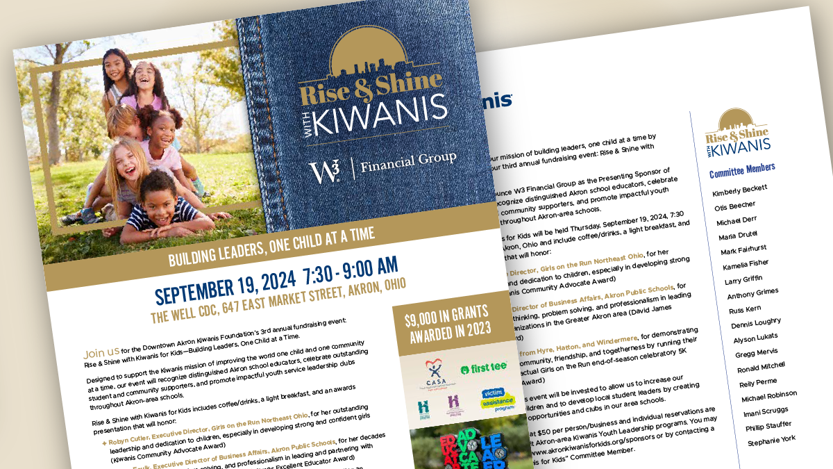 Rise & Shine with Kiwanis for Kids is the yearly fundraising effort of the Downtown Akron Kiwanis Foundation.